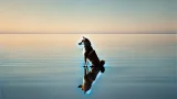 The leash hangs loose, the sky runs wide,